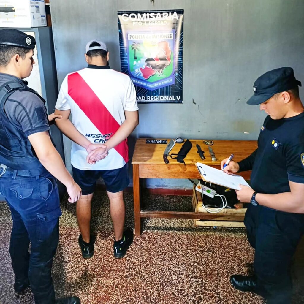Durante el procedimiento también se secuestraron cuchillos tipo puñal que quedaron a disposición de la Justicia como elementos de interés para la investigación. Mientras que el acusado fue alojado en sede policial.